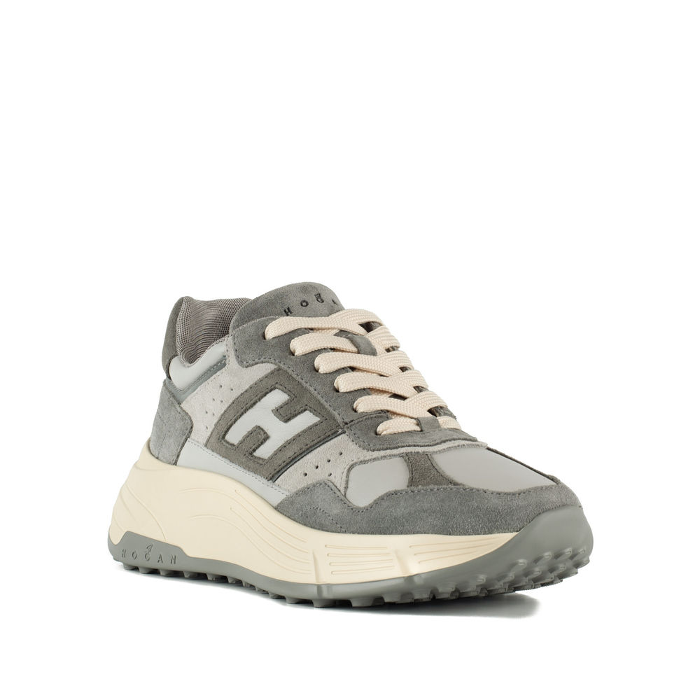 Le sneakers Hogan H669 declinano al femminile la suola Hyperlight con tacchetti, con un platform rialzato per elevazione ed eleganza. Rievocando l'iconografia sportiva degli anni '80 con le finiture tecniche e la vocazione urbana, sono caratterizzate da una combinazione di linee morbide e scattanti. La tomaia è qui realizzata in pelle scamosciata, con dettagli in pelle laminata e una maxi H sulla banda laterale. Un energico modello athleisure, con una soletta in memory foam che assicura un extra comfort e una calzata ammortizzata.