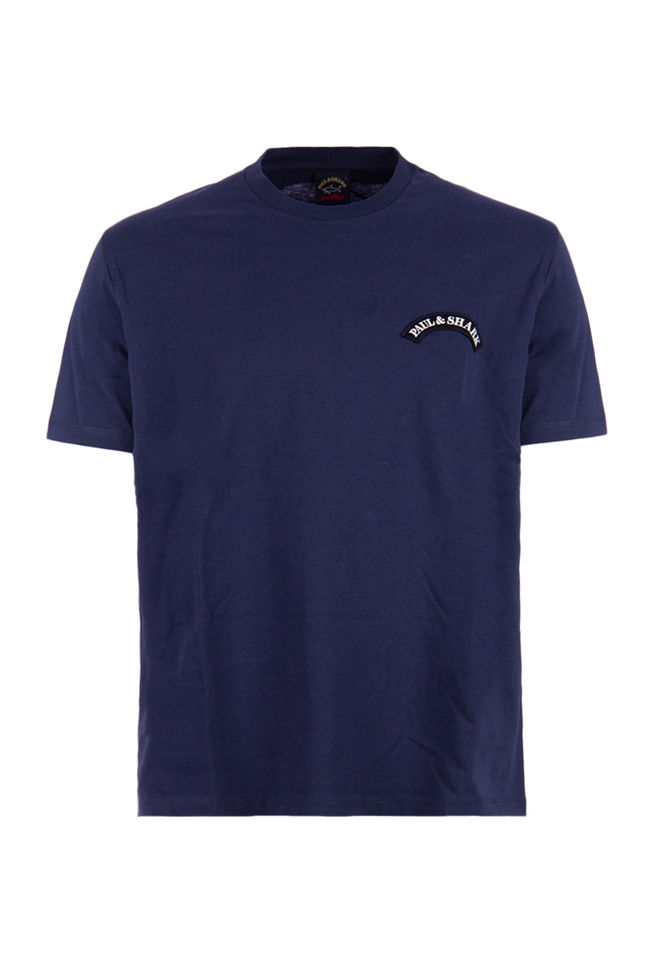 T-shirt in cotone con stampa squalo con stemma Paul & Shark. Vestibilità regolare. Maniche corte. Prodotto in Italia. Composizione: 100% cotone