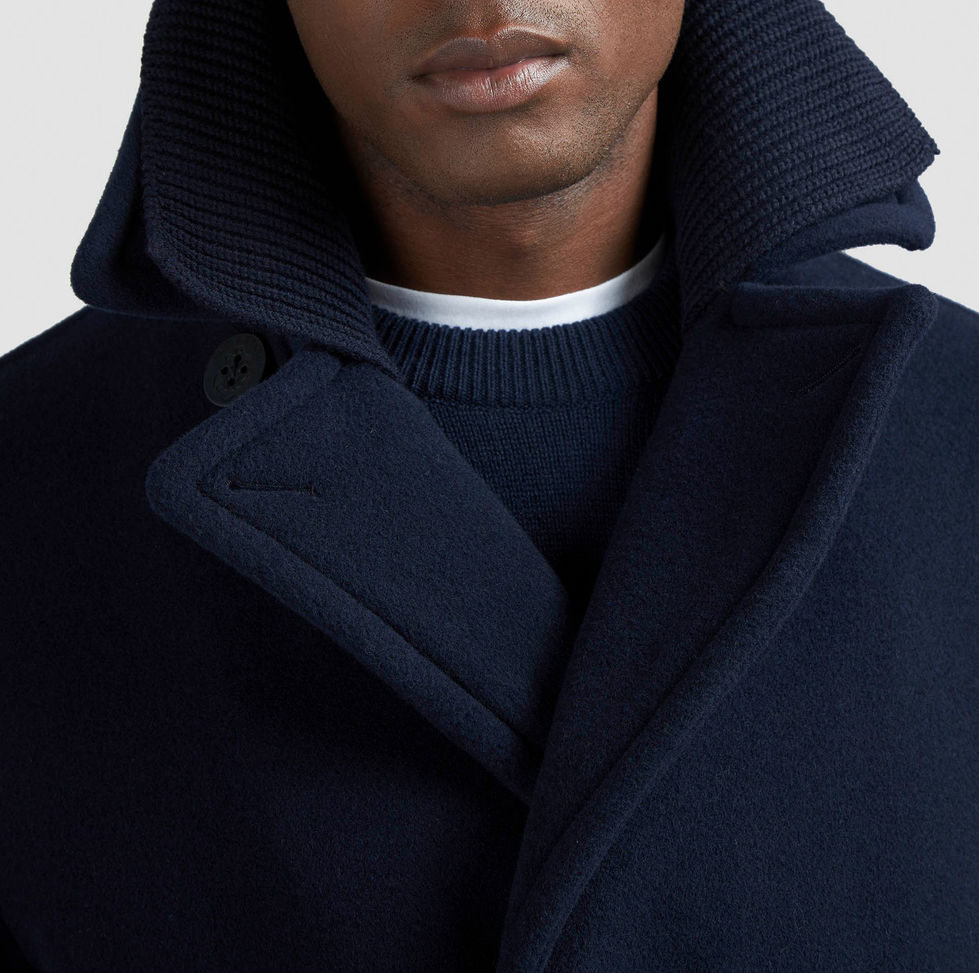 Ispirato all'estetica sailing e rifinito con cura sartoriale, questo peacoat Paul & Shark è il classico senza tempo da indossare in ogni occasione. Il modello ha un design iconico con il revers ampio, la chiusura doppiopetto con bottoni logati e le comode tasche a filetto sui lati. Realizzato in lana e cashmere dall'effetto tattile lussuoso, è arricchito con il collo rimovibile in maglia e la fodera in raso con il logo Paul & Shark reinterpretato come stemma araldico.