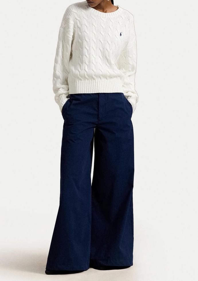 Questa maglia a girocollo dal taglio ampio è realizzata in morbido cotone pettinato e presenta l'esclusiva lavorazione a trecce.