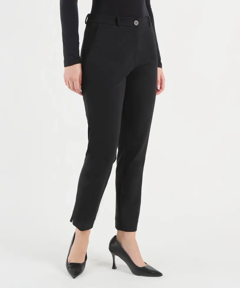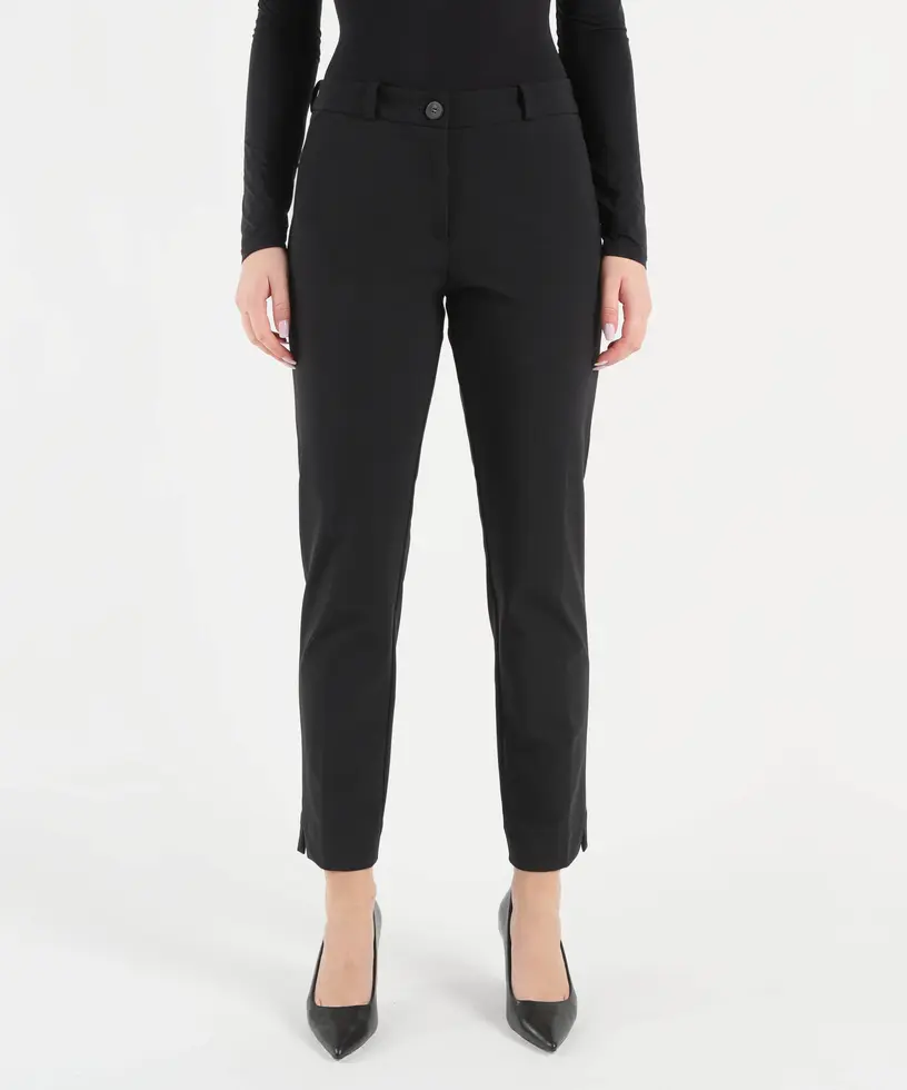 Questi pantaloni chino in nell'esclusivo Surflex® elasticizzato invernale interpretano con eleganza contemporanea un essenziale del guardaroba femminile. La texture opaca e liscia al tatto, unita alle proprietà anti piega e no-iron, definisce un capo funzionale, ideale per accompagnare con stile la quotidianità. La linea regolare valorizza la pulizia del design, sottolineata dalle tasche alla francese che conferiscono un equilibrio di sobrietà e raffinatezza. Rappresentano una scelta versatile per un'eleganza rilassata ma sempre curata, perfetti per la donna dinamica e sofisticata, per dare vita a un look dall'equilibrio tra essenzialità e raffinatezza.